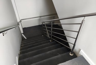 Instalações personalizadas para escadas, sacadas e áreas comuns de empresas.
